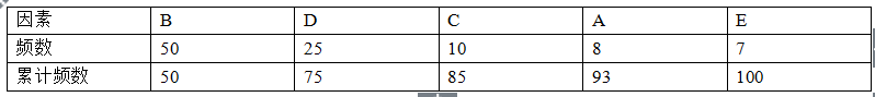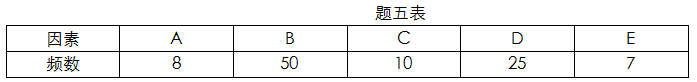 某项目相关因素发生的频数如题五表所示。请确定主要因素、次要因素和一般因素。