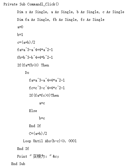 请编写程序求函数的根,要求采用二分法求函数f(x)=x^3-x^4+4x^2-1 在区间[0,1]内的一个实根,给定误差为0. 作者:高老师 时间:2024-08-13 浏览 1 请编写程序求函数的根,要求采用二分法求函数f(x)=x^3-x^4+4x^2-1 在区间[0,1]内的一个实根,给定误差为0.0001。算法说明:若f(x)=0在区间[a,b]上有一实根,则f(a)×f(b)< 0,取c=(a+b)/2;若f(a)×f(c)>0,则令a=c,否则令b=c;当|b-c|<给定误差,则c就是要求的根。【正确答案】:O【题目解析】: 📱 扫码体验刷题小程序 扫一扫使用我们的微信小程序