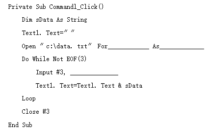 下列程序的功能是:把程序文件data.txt的内容全部读入内存,并在文本框Text1中显示出来。 作者:高老师 时间:2024-08-13 浏览 0 下列程序的功能是:把程序文件data.txt的内容全部读入内存,并在文本框Text1中显示出来。【正确答案】:Input #3 sData 📱 扫码体验刷题小程序 扫一扫使用我们的微信小程序