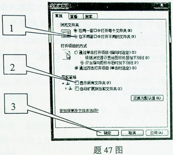 在Windows7对话框窗口中有多个元素,写出如题47图标识号指向的元素名称。 作者:高老师 时间:2024-07-21 浏览 0 在Windows7对话框窗口中有多个元素,写出如题47图标识号指向的元素名称。 【正确答案】:(1)单选按钮 (2)复选框或多选框 (3)命令按钮 📱 扫码体验刷题小程序 扫一扫使用我们的微信小程序