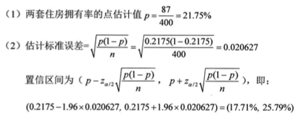 某房地产商为了了解商品房的市场需求情况,从某地居民中按重复抽样法抽取400人进行调查,得知这400人中拥有两套住房的有87人。计 作者:高老师 时间:2024-07-21 浏览 0 某房地产商为了了解商品房的市场需求情况,从某地居民中按重复抽样法抽取400人进行调查,得知这400人中拥有两套住房的有87人。计算:(1)该地区全部居民两套住房拥有率的点估计值。(2)以95%(Z0.025=1.96)的置信度估计全部居民两套住房拥有率的置信区间【正确答案】: 📱 扫码体验刷题小程序 扫一扫使用我们的微信小程序