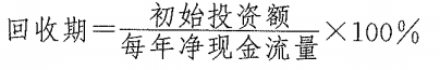 求解使上式成立时的IRR,即为项目的内含报酬率。回收期(PP)是指原始投资额通过未来现金流量回收所需要的时间,代表收回投资所需要的年限。回收期越短,方案越有利。如果初始投资一次支出,且每年净现金流量相等,其计算公式为: