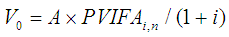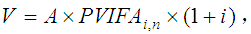 该题考查对先付年金现值计算公式的掌握。先付年金是指一定时期内每期期初等额的系列收付款项。N期先付年金现值和N期后付年金比较,两者付款次数相同,但是先付年金比后付年金现值少折现一期。为求得N期先付年金的现值,可在N期普通年金现值后再乘以(1+i),计算公式: